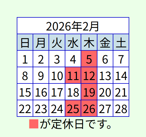 2月の営業カレンダー